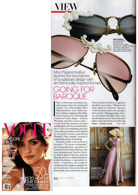 Love how thai eyewear designer Moo Piyasombatkul's beautiful baroque sunglasses has been getting a lot of buzz lately. Thai designers I find, are exceptional and I wonder why sometimes, that they don't get more international exposure. These Baroque deco sunnies have totally changed the game. I love them, may get my hands on a pair!